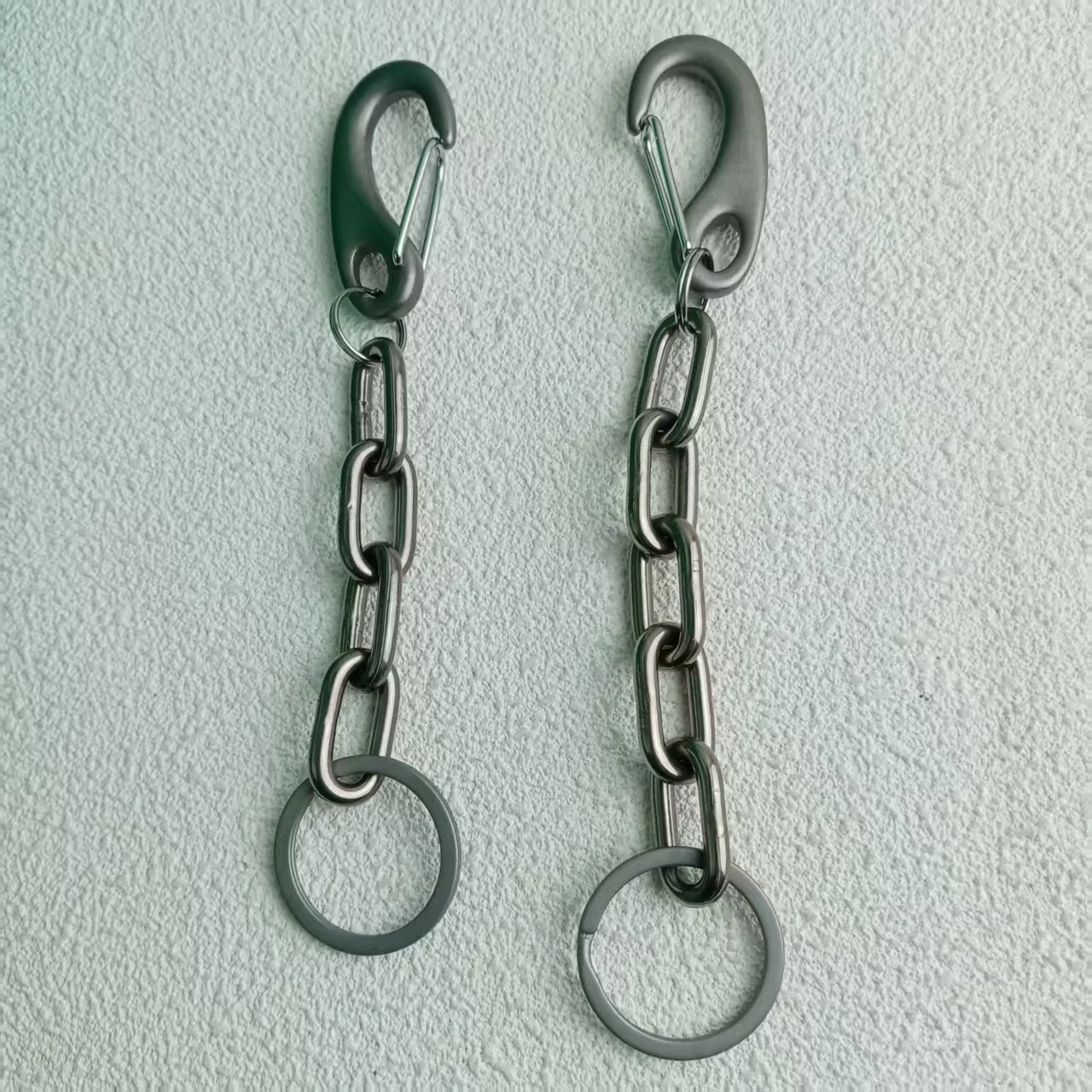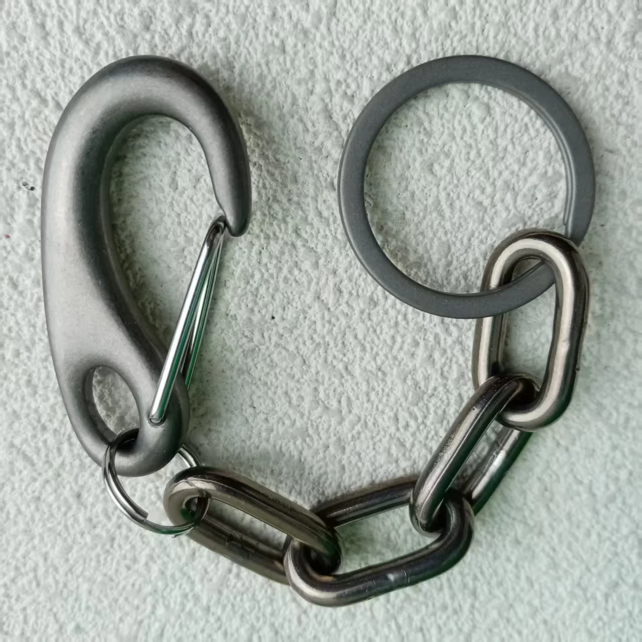 14mm pure titanium keychain stone washed titanium alloy pig waist buckle and stone washed 32mm titanium ring