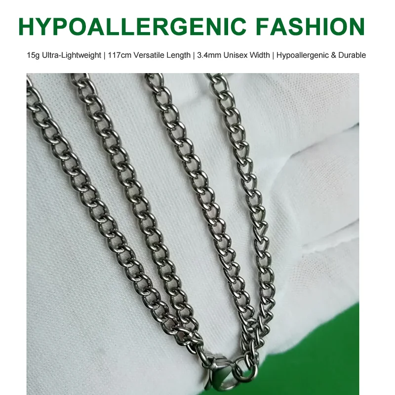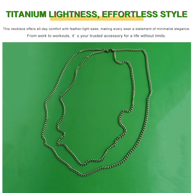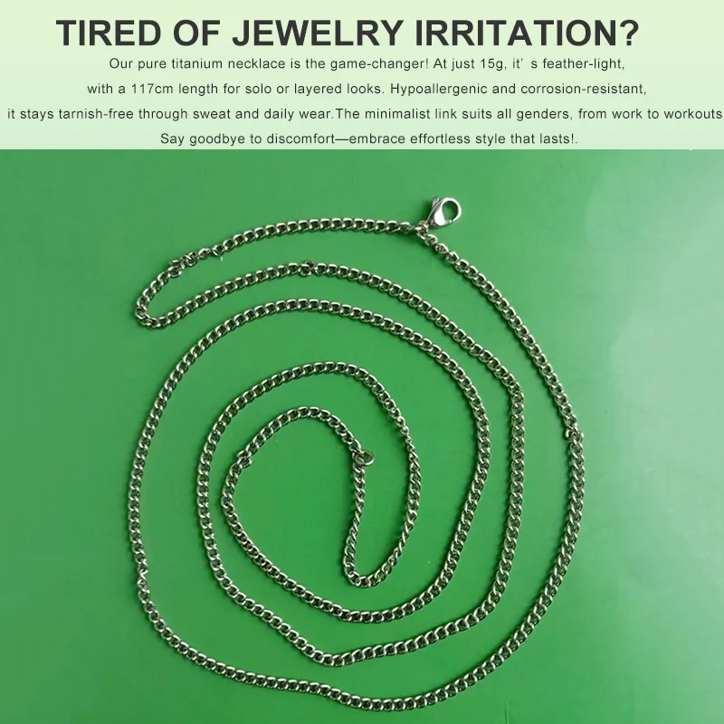 Core Selling Point: A feather-light 15g titanium chain designed for layering, featuring a 117cm (46-inch) length and hypoallergenic properties. It combines weightless comfort, skin-friendly safety, and versatile styling—perfect for sensitive skin and effortless layered looks.