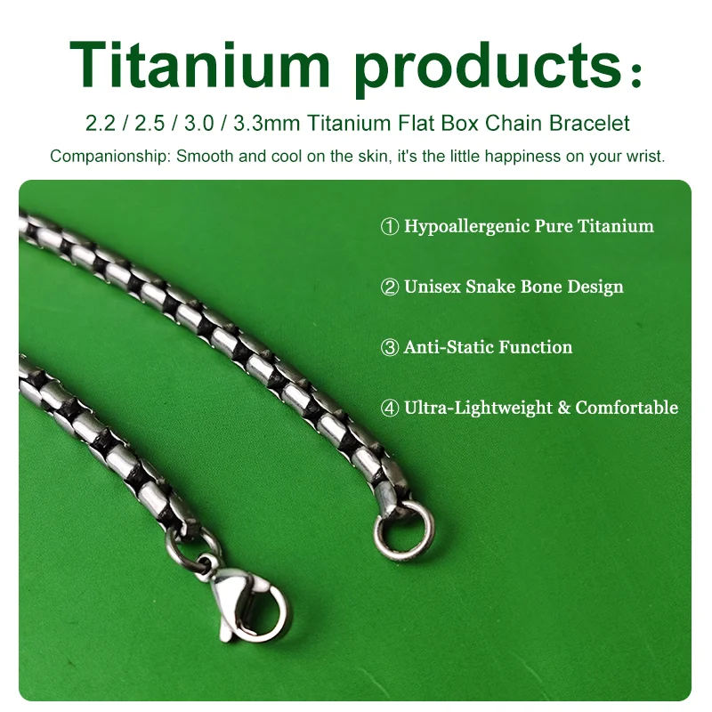 2.2 2.5 3.0 3.3mm Pure Titanium Flat Box Chain Bracelet Men Women Hypoallergenic Lightweight Diving Jewelry