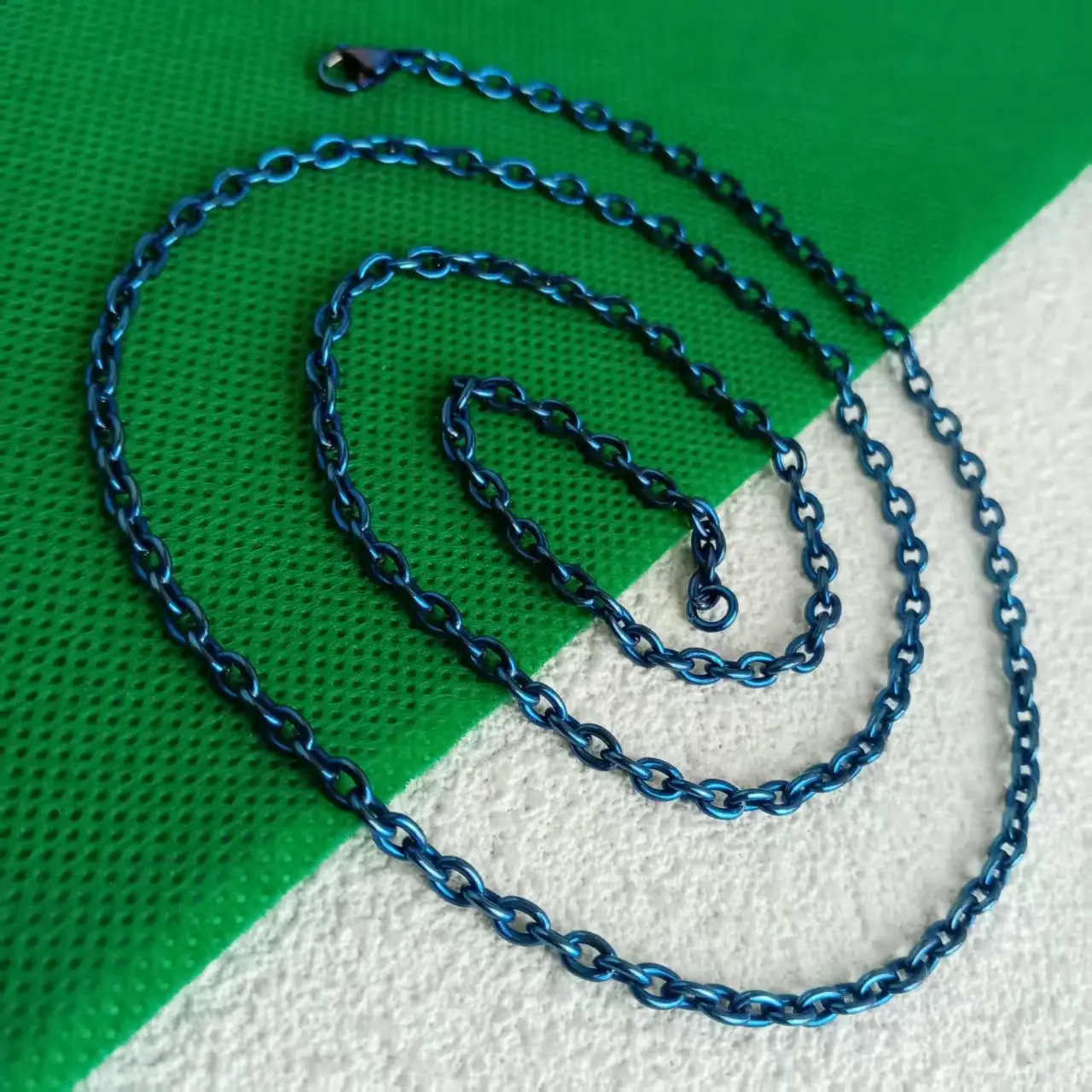 3.5mm pure titanium blue round O-chain necklace, men's and women's hypoallergenic lightweight jewelry