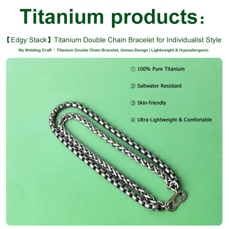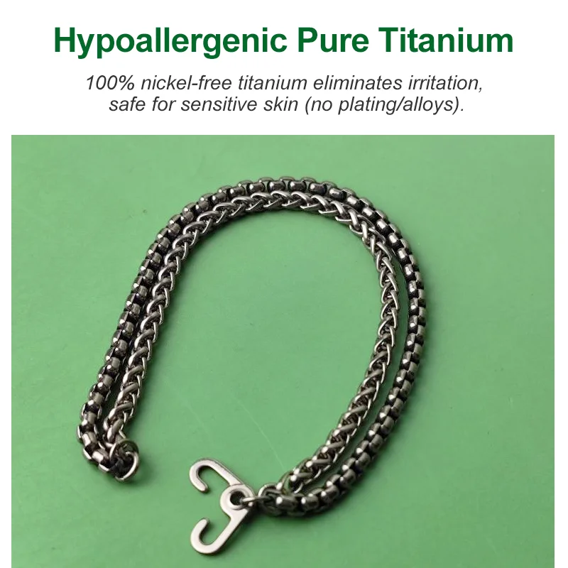 Crafted with a seamless 4mm woven chain and 4mm box chain layered design, this pure titanium bracelet blends industrial toughness with sleek style. Titanium is feather-light, hypoallergenic, and tarnish-resistant. The interlocking chains create a unisex statement piece—ideal for daily wear or as a thoughtful gift.