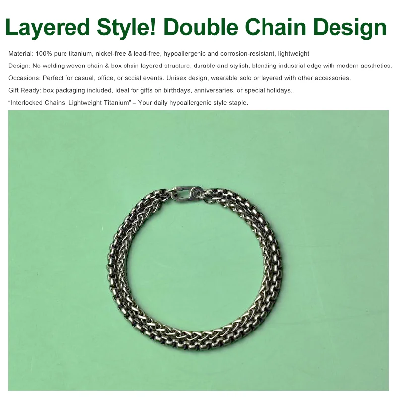 Be the first to review “4mm Pure Titanium Double Chain Bracelet Layered Woven and Box Chain Hypoallergenic Unisex”