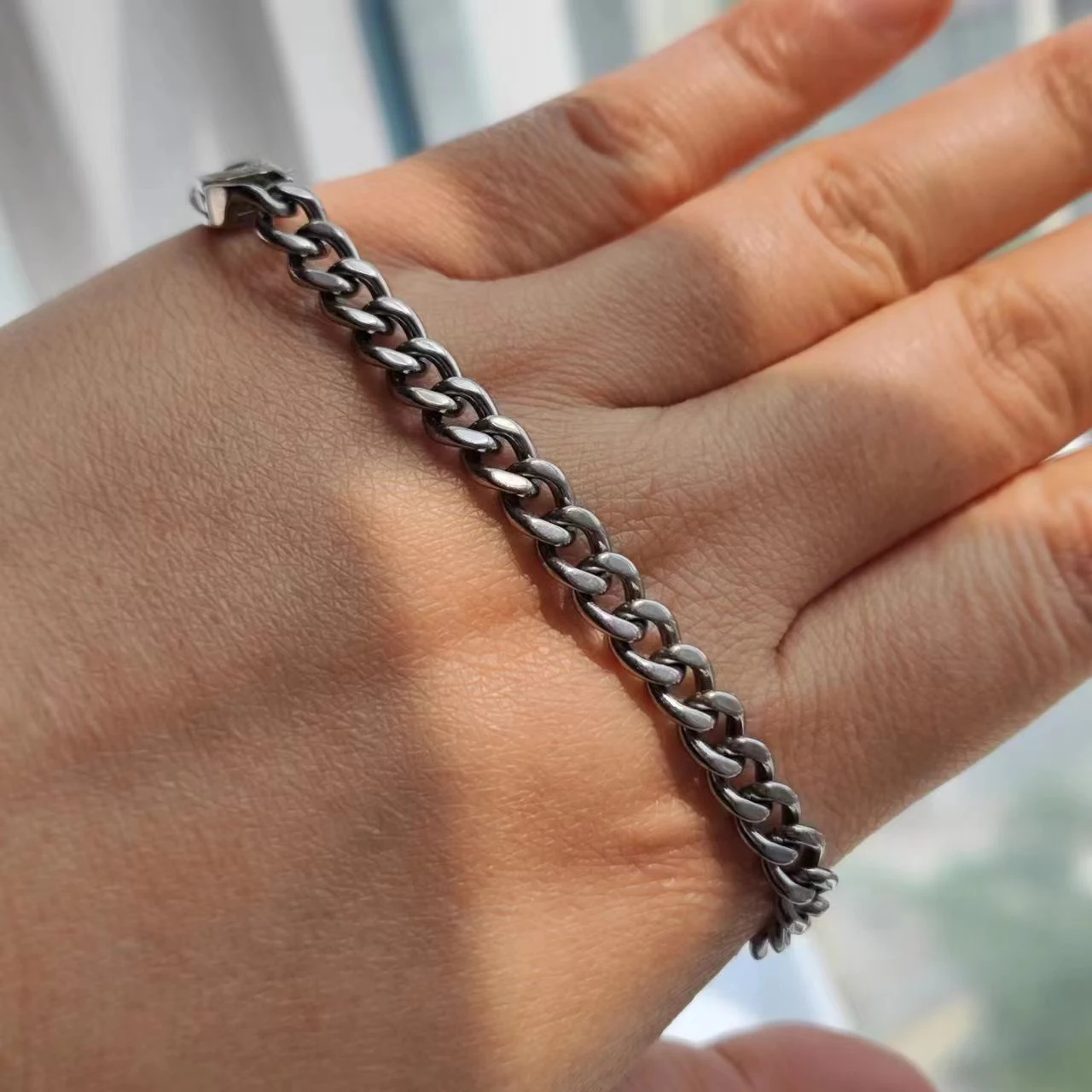 This titanium chain bracelet for men and women is super lightweight for all day wear.