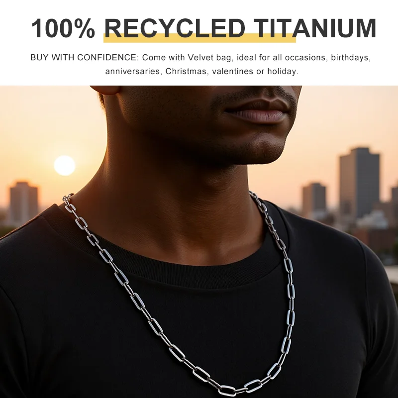 5MM Pure Titanium Paperclip Chain Necklace | Hypoallergenic Unisex Jewelry Gift for Men Women | Valentine’s Day Birthday