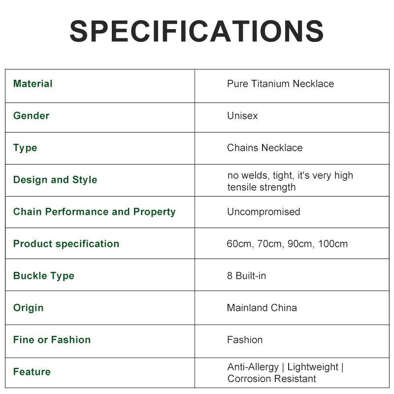 5mm pure titanium patterned O-chain necklace, lightweight, waterproof, and hypoallergenic