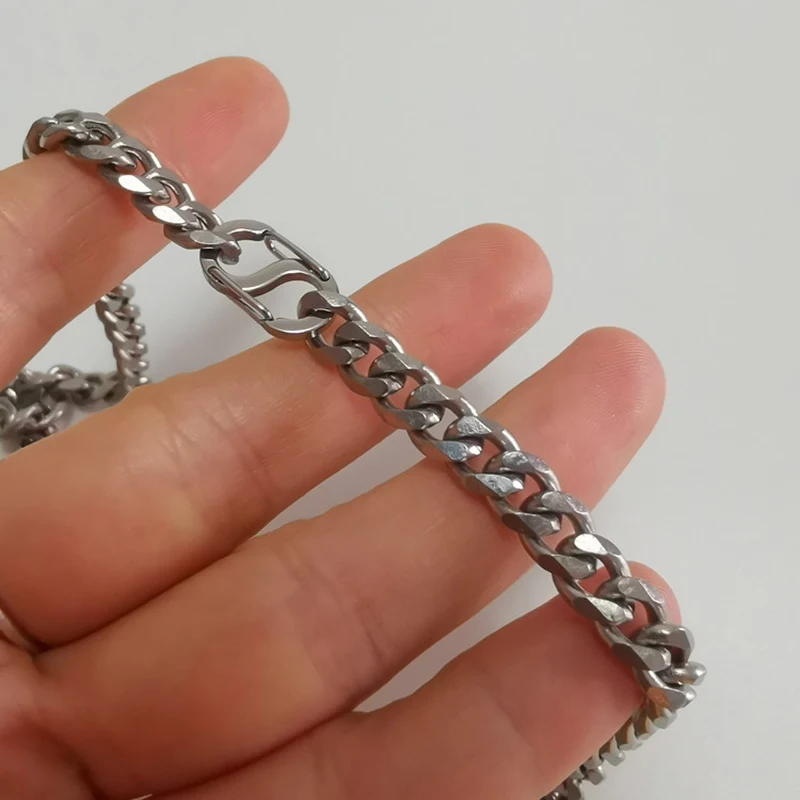 7.0MM Width Solid Pure Titanium Curb Chain Link Necklace Men Hip Hop Thick Chain