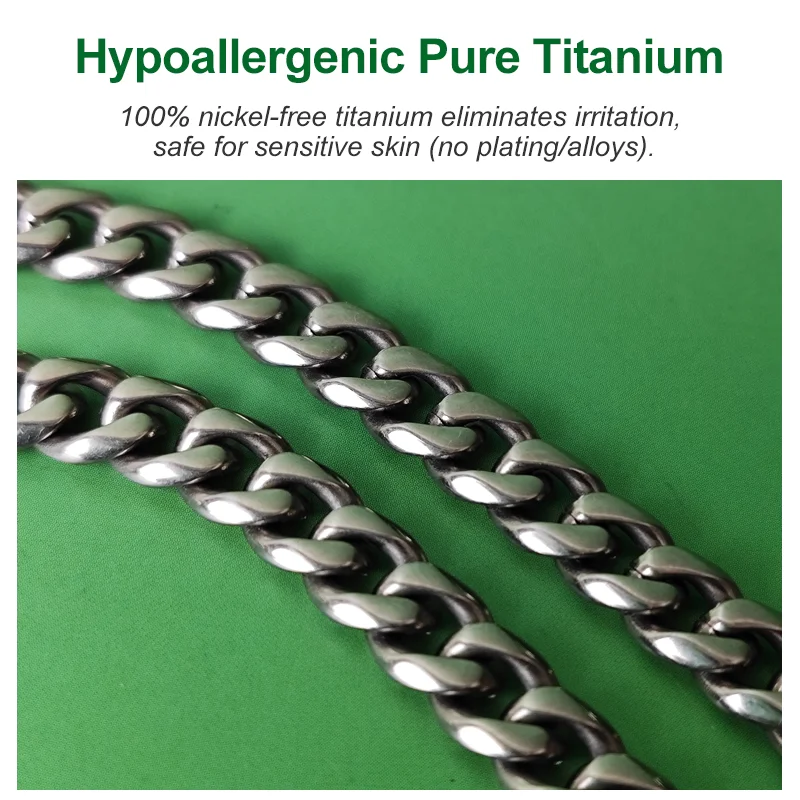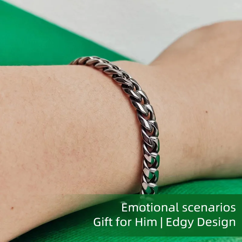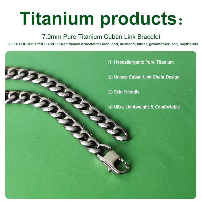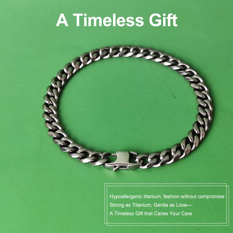 This 7mm pure titanium Cuban chain combines simplicity and elegance, while being lightweight, durable, and hypoallergenic, making it an ideal choice for everyday wear and special occasions. Its minimalist design suits men of all ages, and when combined with emotional marketing, it can significantly boost holiday gift sales.