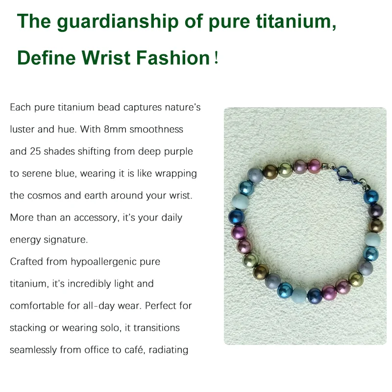 8mm Solid Pure Titanium Bracelet – Anti-Allergic & Non-Fading, Multi-Color for Business/Couples/Gifts