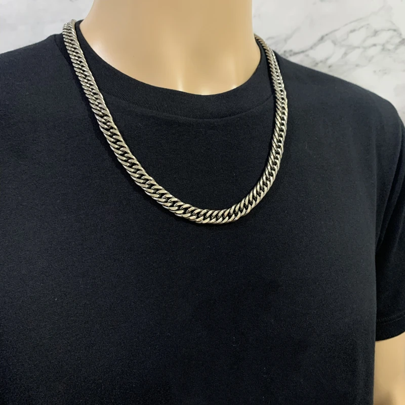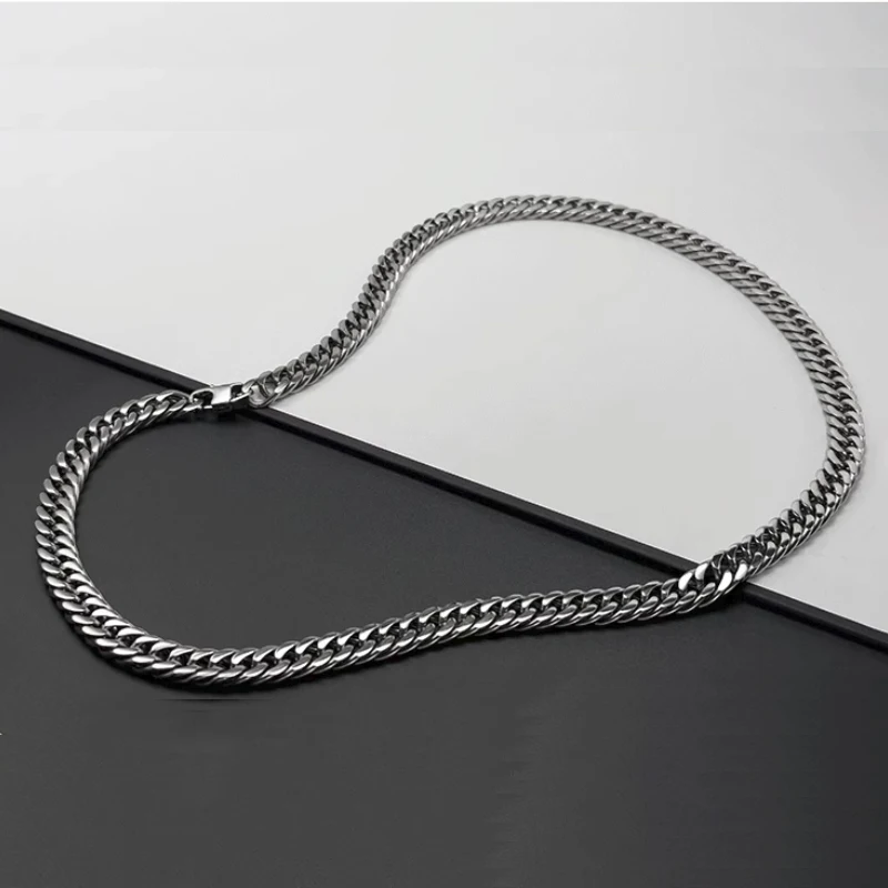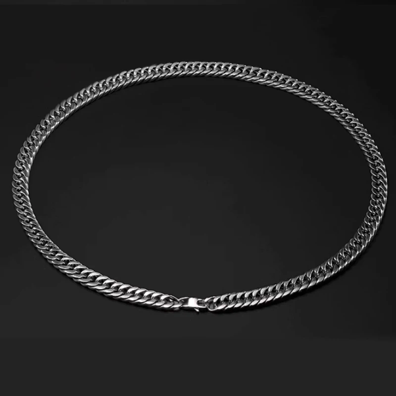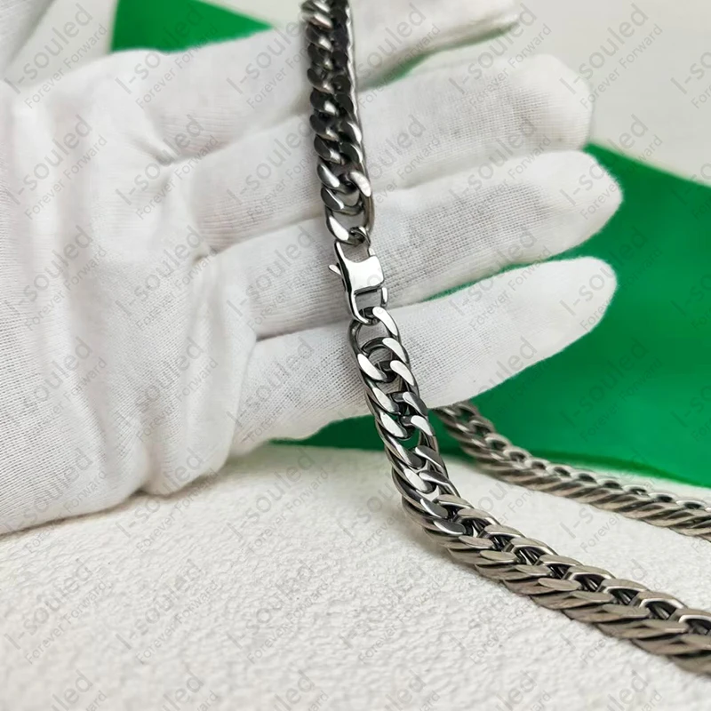 Pure Titanium Horsewhip Chain Necklace Hiphop Flat Cuban Link Chain Necklaces