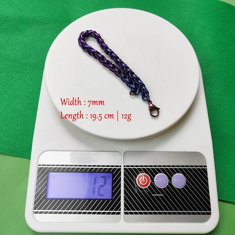 Be the first to review “Anodized Titanium Purple Blue Copper 7MM Pure Titanium Dragon Keel Chain Bracelet Lobster Clasp Unisex”