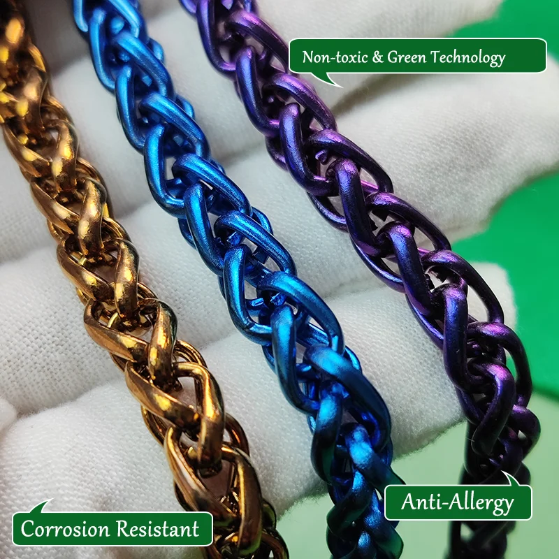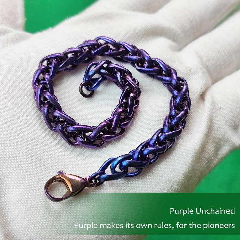 Anodized Titanium Purple Blue Copper 7MM Pure Titanium Dragon Keel Chain Bracelet Lobster Clasp Unisex