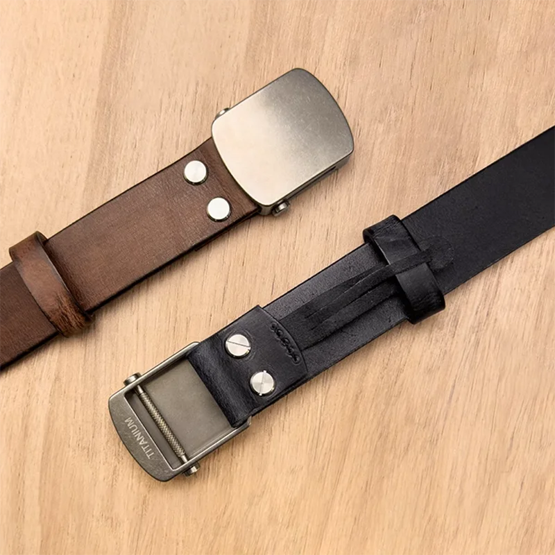 Pure titanium minimalist top layer genuine cowhide high-end roller buckle waistband, quick detachable automatic buckle waistband nylon strap