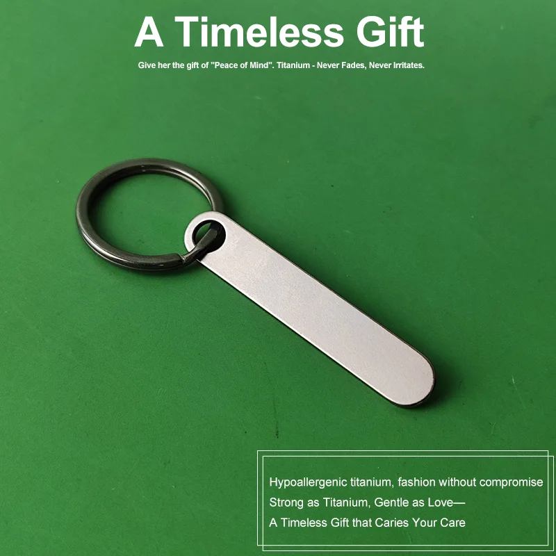 This pure titanium blank plate is hypoallergenic and never fades. Engrave a name, a secret code, or a special date.