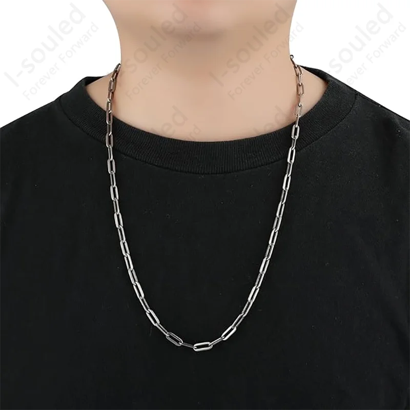 Classic Paperclip Chain Necklace Pure Titanium 5MM Width Link Chain Necklaces for Men Women Birthday Anniversary Valentines Gift
