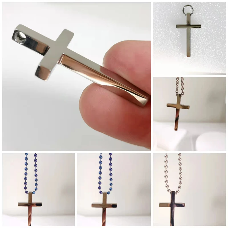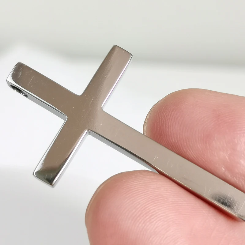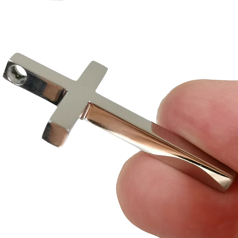 Made from premium Ta1/Gr1 titanium, this cross pendant features a bright silver finish that never fades or rusts, ideal for unisex wear. Versatile as a necklace charm or keychain accessory, it's lightweight , durable, and hypoallergenic for daily comfort. Titanium's antibacterial properties ensure hygiene, with the cross symbolizing faith and protection—perfect as a stylish fashion piece or gift.