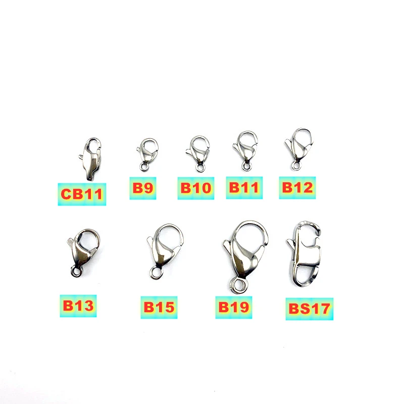 Hypoallergenic Solid Titanium Alloy Lobster Clasp -Small, Medium and Large Size Necklace Bracelet Clasp in Natural Silver Color
