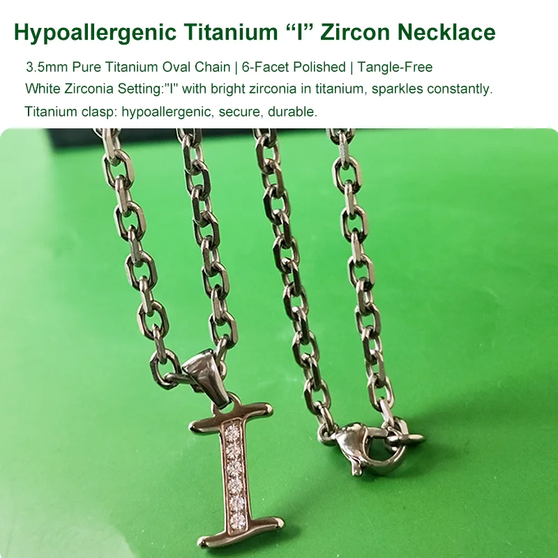 “I” stands not just for Initial, but for Independence. Crafted from lightweight, hypoallergenic titanium, this “I” necklace is for the sensitive-skinned and free-spirited. Its effortless comfort moves with you, while the zirconia adds a discreet sparkle. More than an accessory, it's a testament to your health, confidence, and unique taste. A thoughtful gift for her, or a perfect reward for yourself.