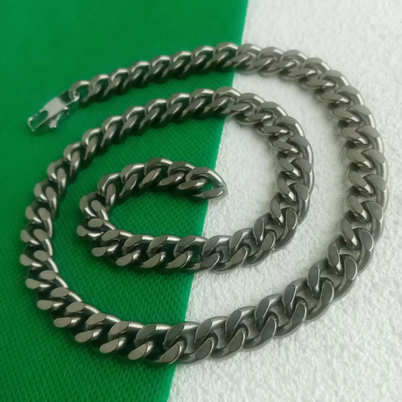 10.5mm Pure Titanium Washed Cuban Necklace