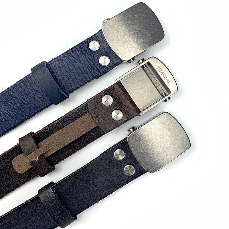 Men's Belt Pure Titanium Tactical Automatic Slide Buckle 3.5 Cm Male Genuine Leather Belt