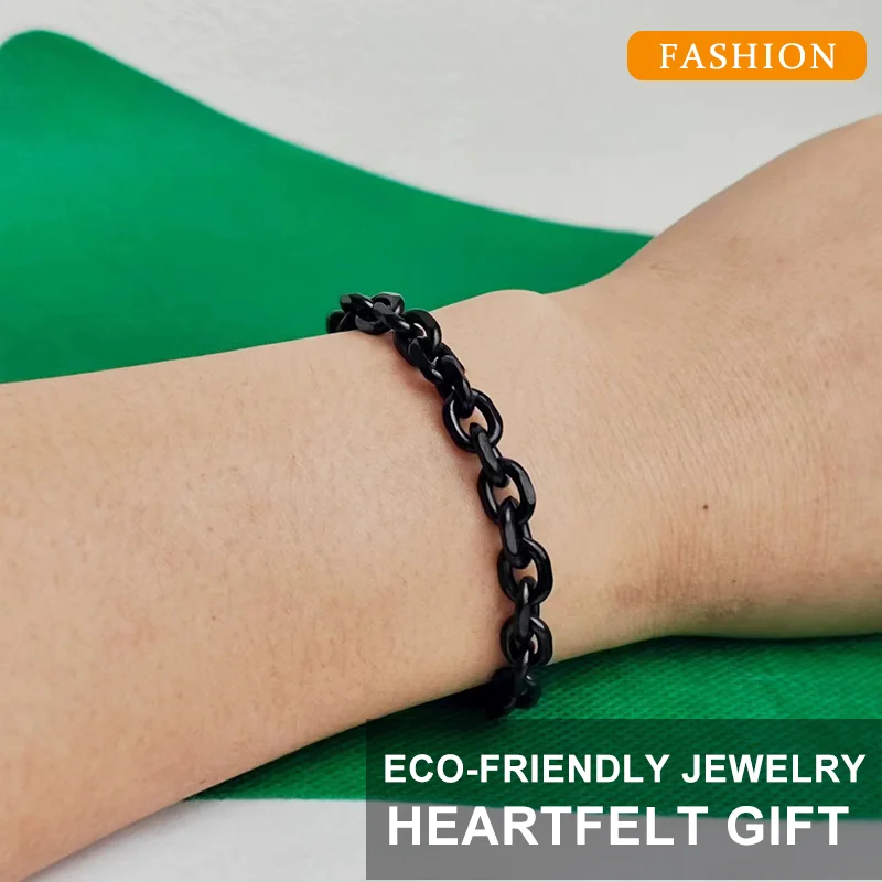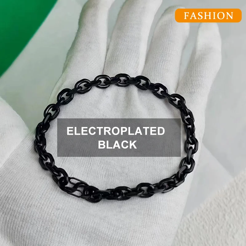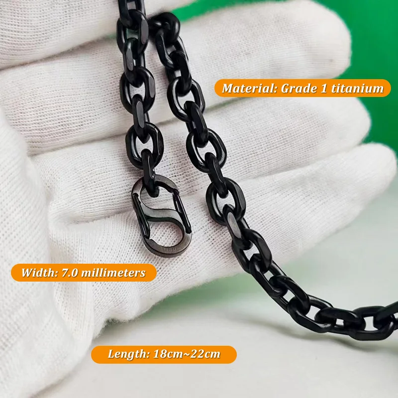 Men's Black Titanium 7MM Anchor Chain Bracelets Graduation Birthday Gift 2024 New Oval Chain Bracelet