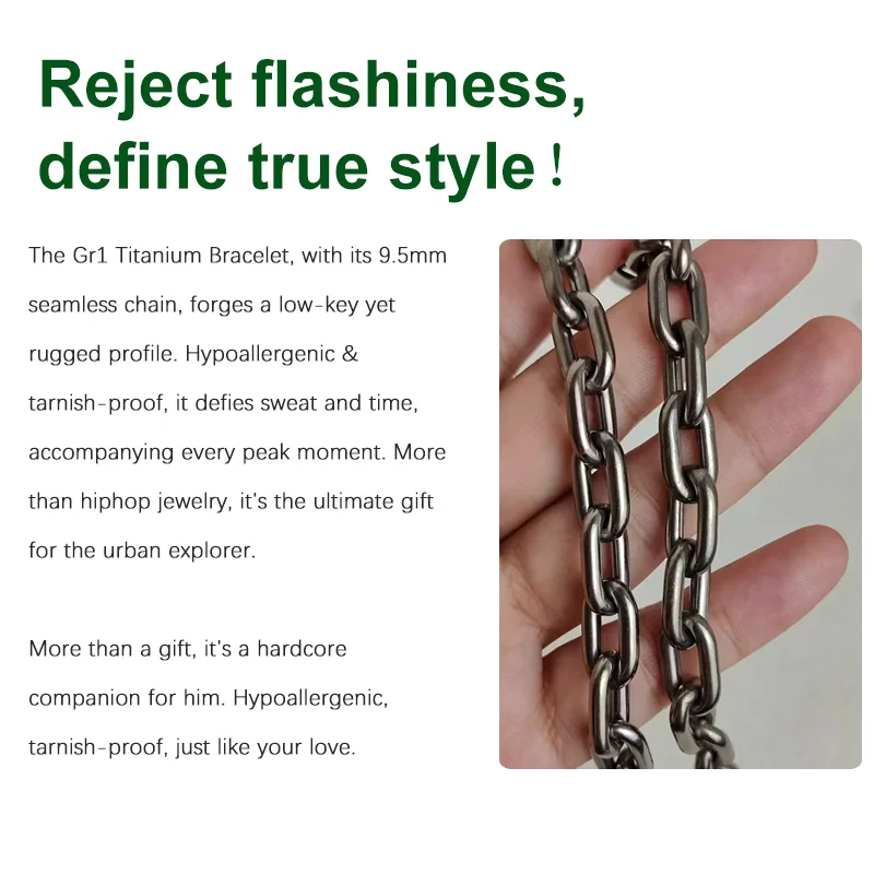 Men's Gr1 Titanium Bracelet | 9.5mm Seamless Chain | Hypoallergenic & Anti-Tarnish | Hip hop Jewelry Gift