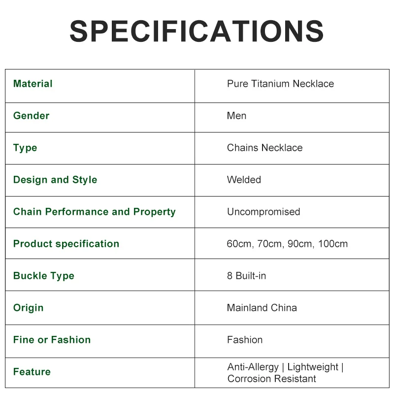 9.5mm pure titanium welded chain, unparalleled in strength and style