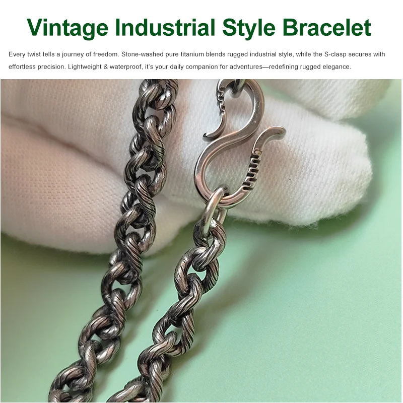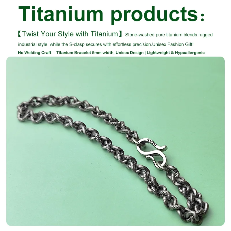 Men's Titanium Bracelet 5mm Wide Twisted Chain Vintage Style Fashion Gift for sensitive skin