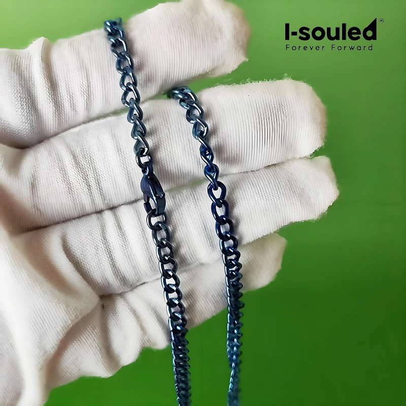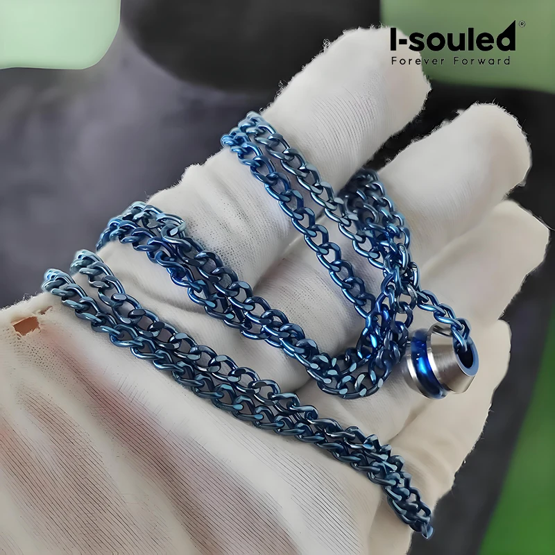 Minimalist Blue Titanium Chain Necklace – Unisex Sailor Fashion Jewelry Gift for Him/Her, Hypoallergenic Everyday Wear