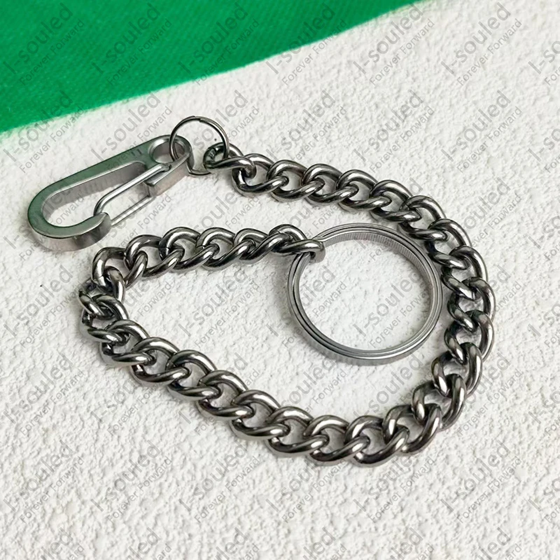 Premium Pure Titanium Bag Wallet Chain KeyChains Round Curb Chain Width 8.7MM For Cool Men Women Gift