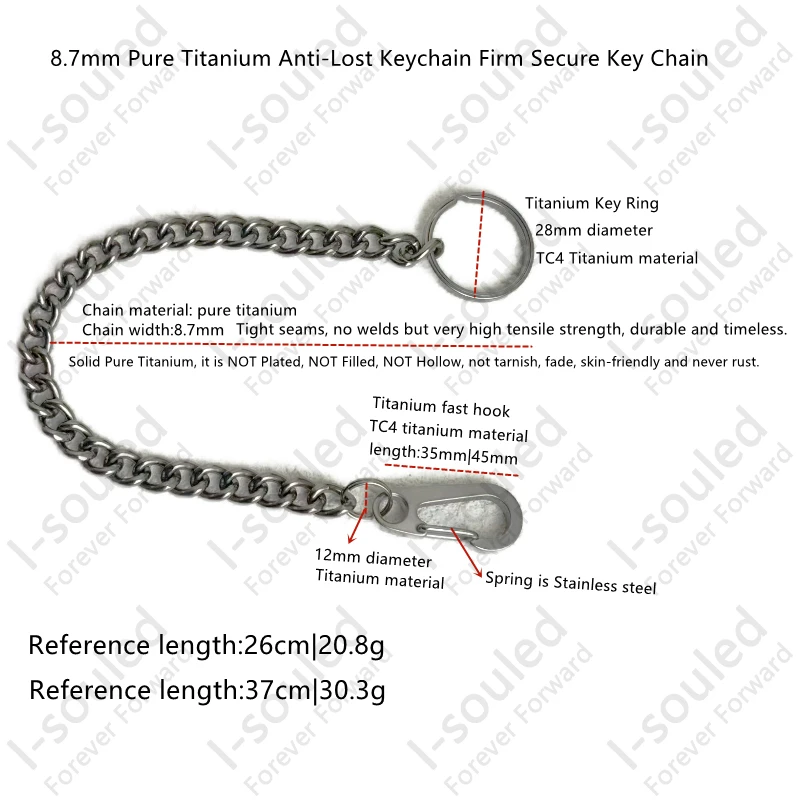 Length included titanium key ring and fast hook:26cm |37cm