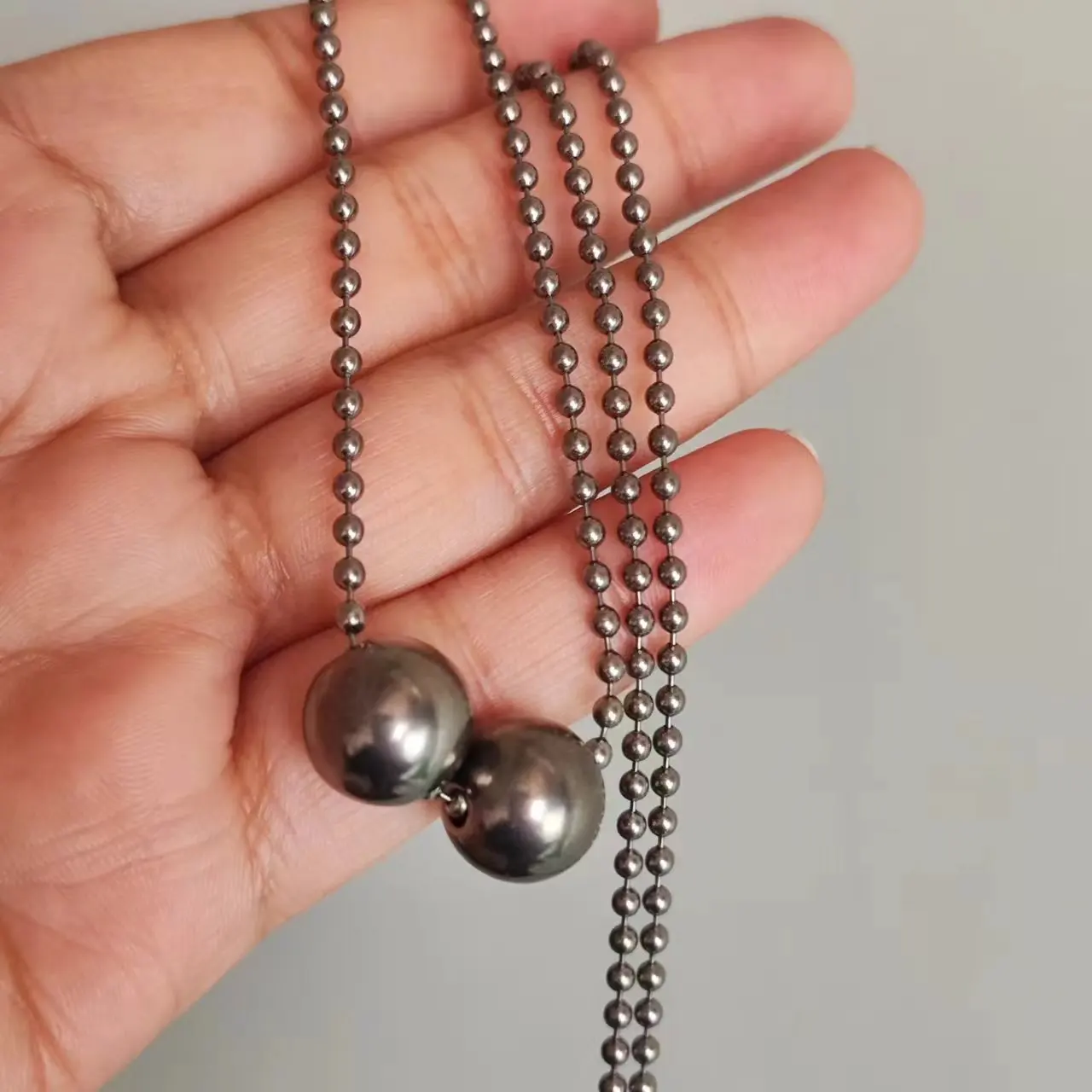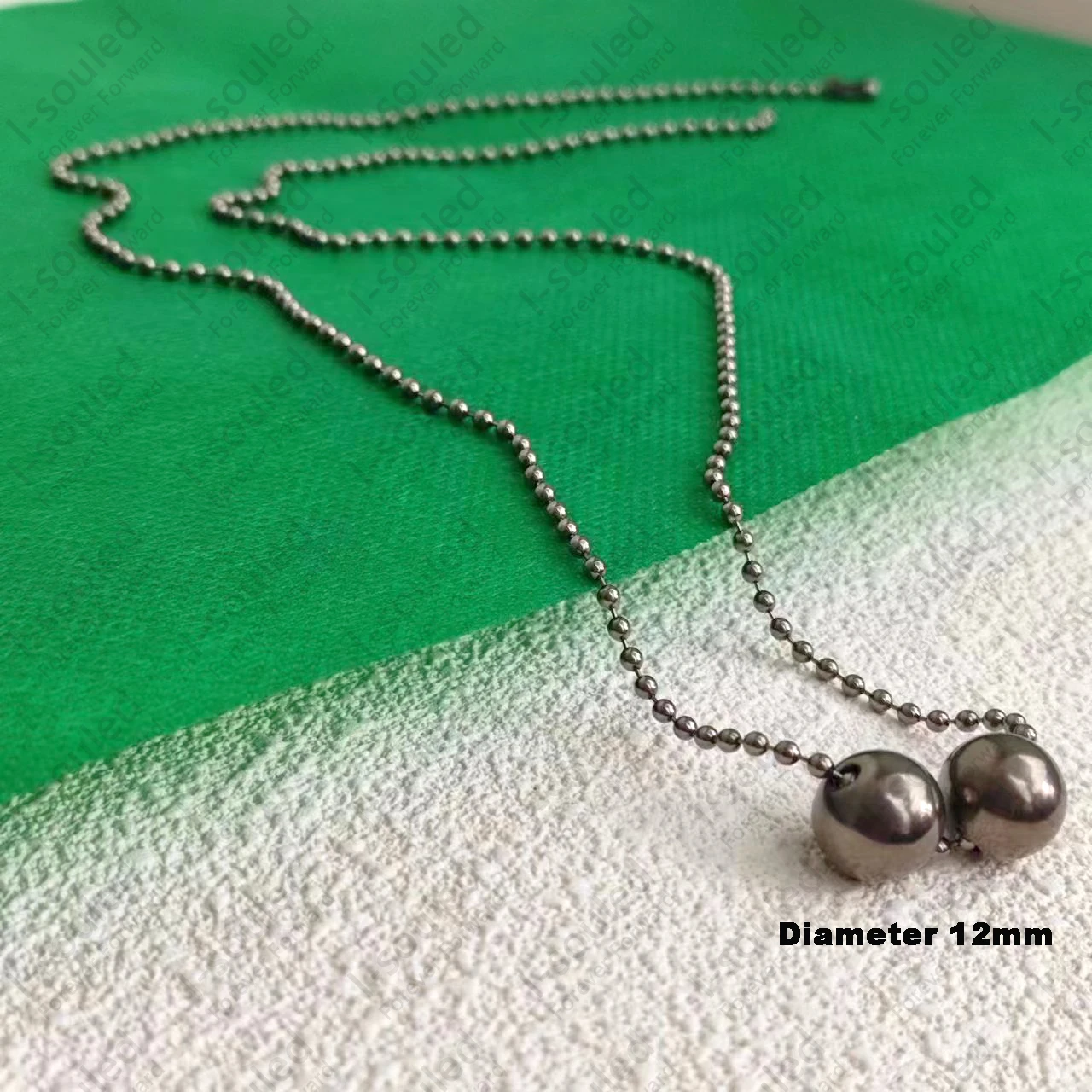 Pure Titanium 12MM Round Bead Pendant Necklace with 24" Long Ball Chain Summer Soon Best Gift