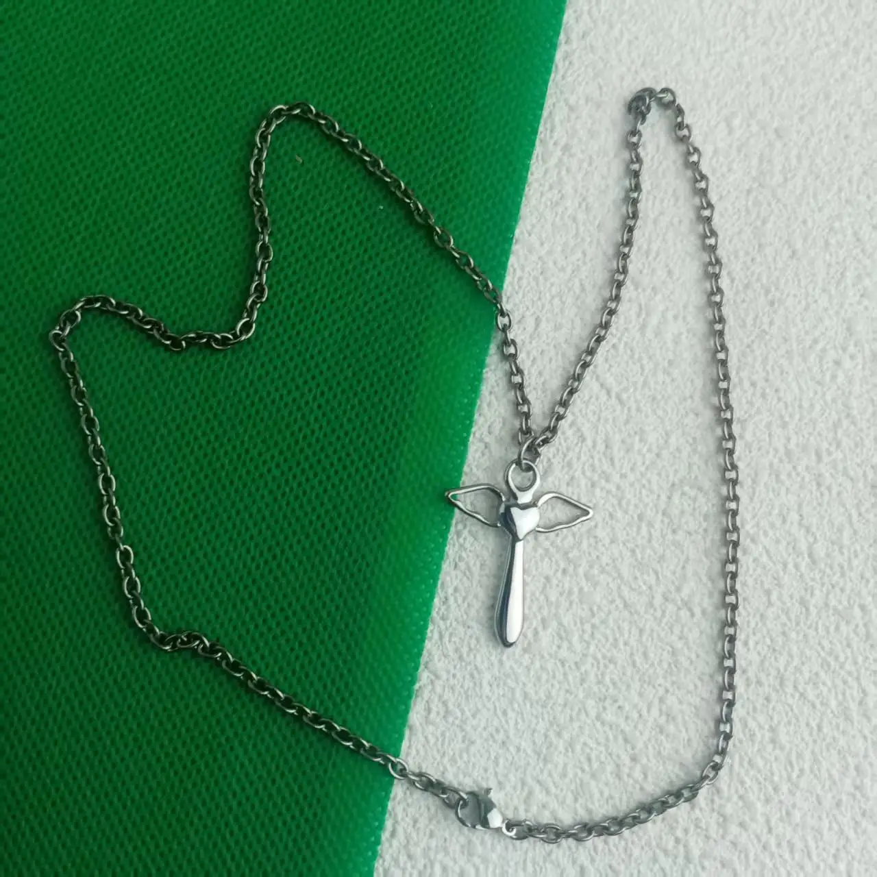 Pure Titanium Angel Wing Cross Pendant DIY Cross Necklace Men’s and Women’s Fashion