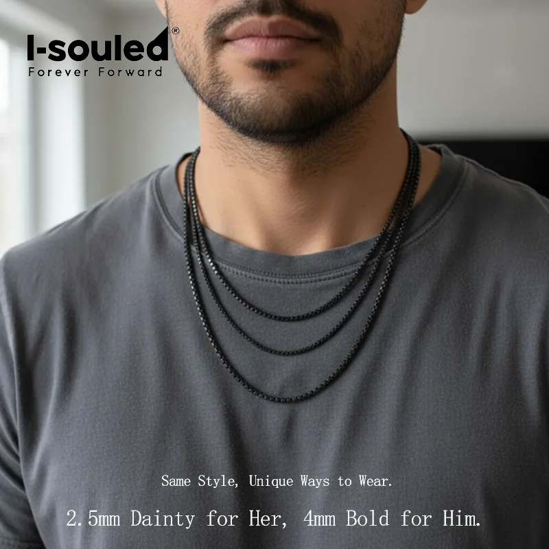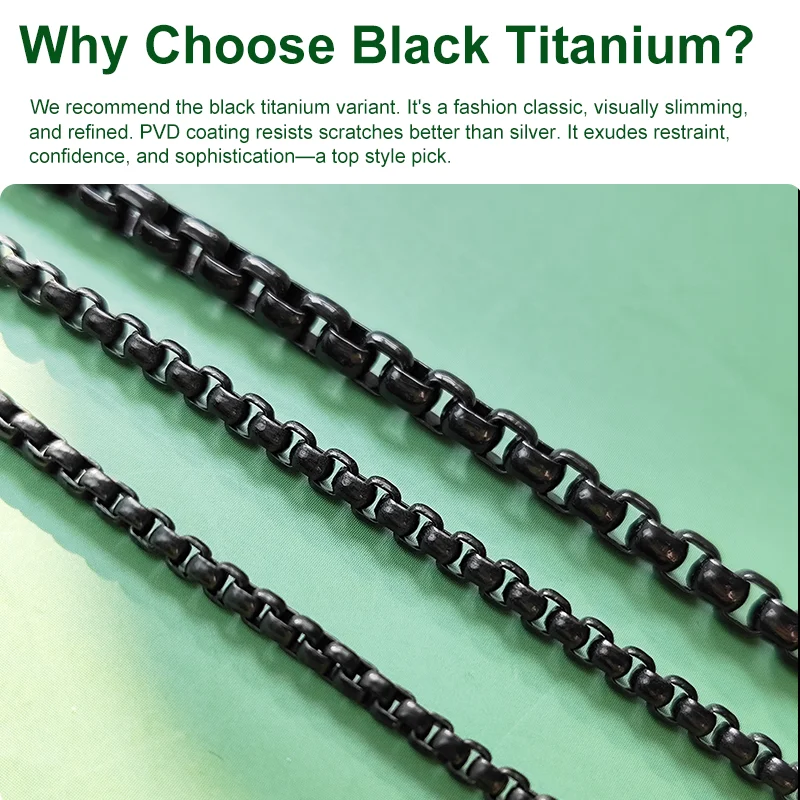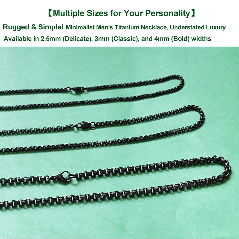 Be the first to review “Pure Titanium Black Round Box Link Chain Necklace – 2.5/3/4mm Fashionable Gift Accessory”