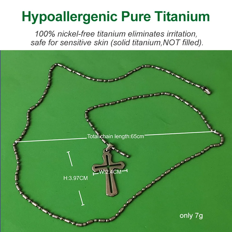 Feather-Light! 65cm Pure Titanium Cross Necklace, Hypoallergenic & Fade-Proof!