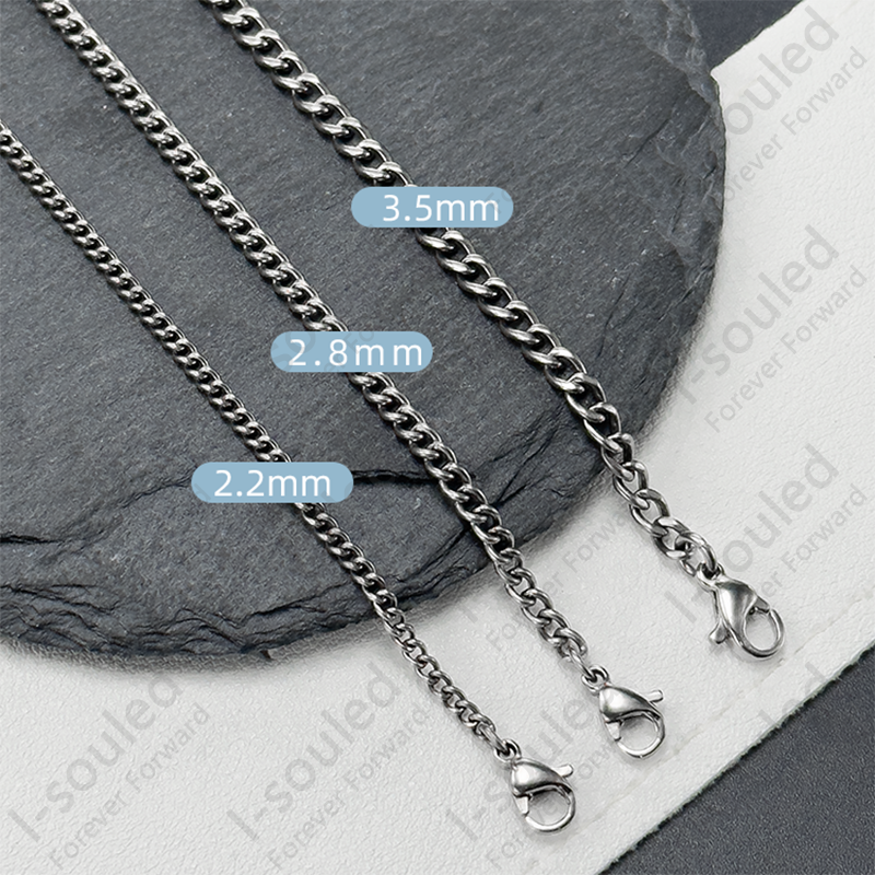 Pure Titanium Curb Chain Seamless Welded Denim Chain Necklace 2.2mm|2.8mm|3.5mm