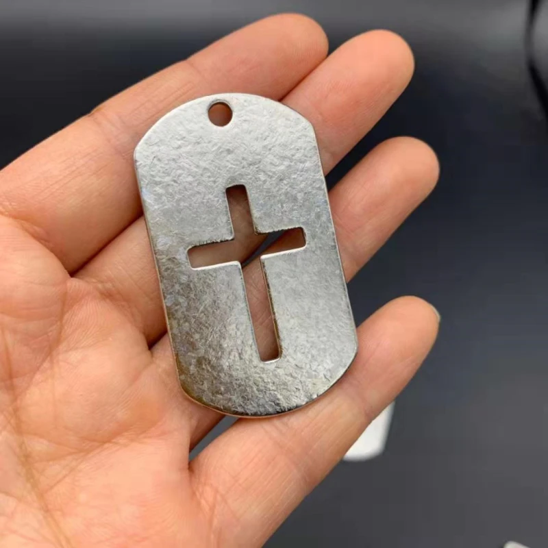 Pure Titanium Hollow- out Cross Dog Tag Pendant 50*28 mm With Necklace