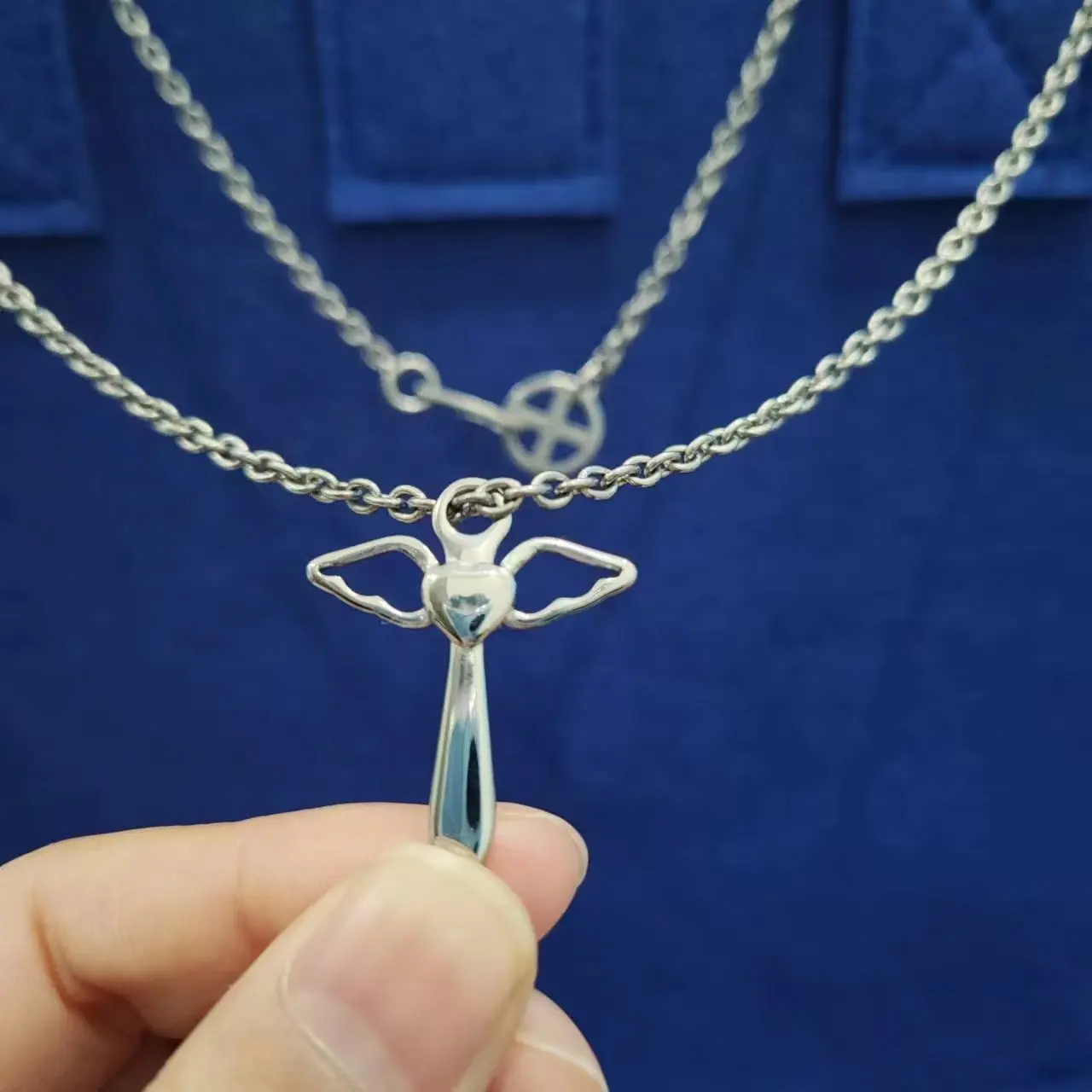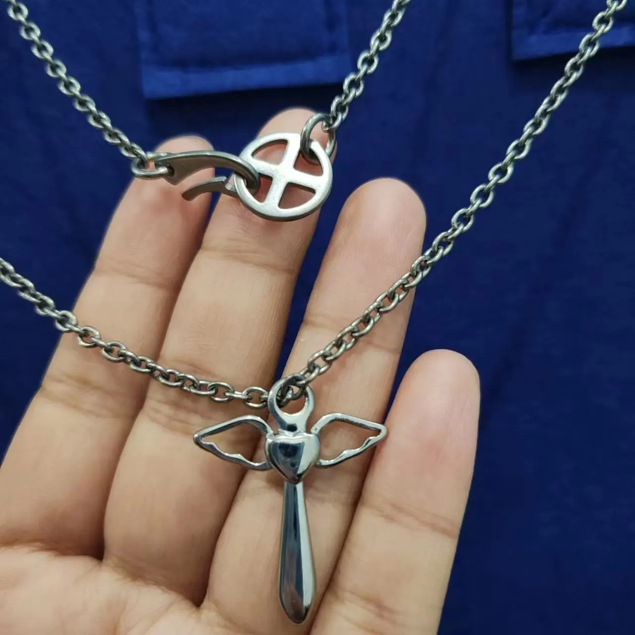 Titanium Angel Wings Cross with Round Oval Cable Chain Necklace 3.0 MM Wide