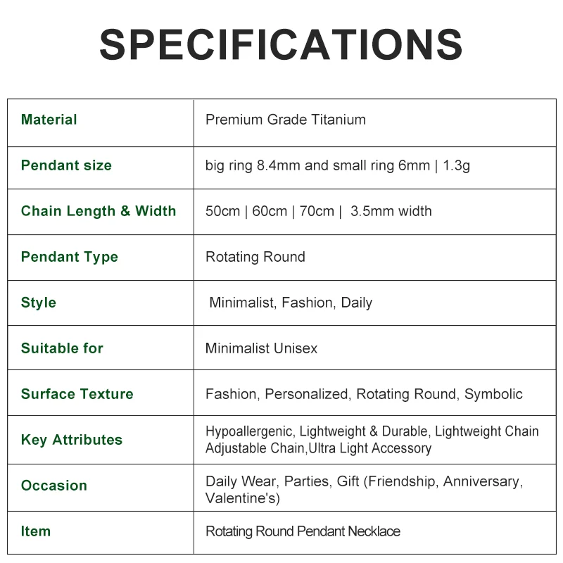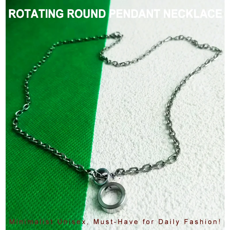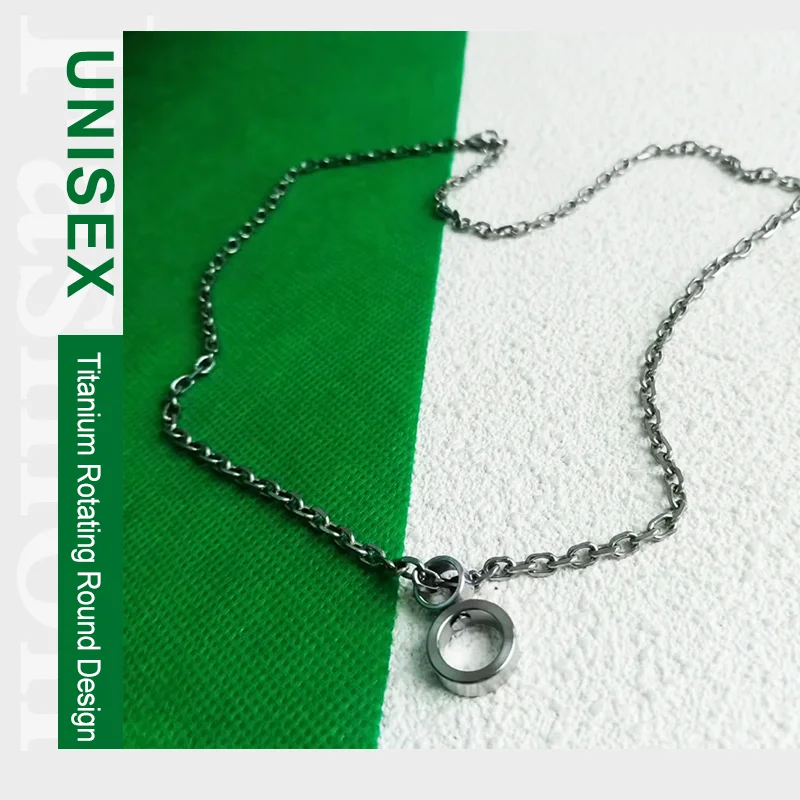 Titanium Rotating Round Pendant Necklace 3.5mm Chain Lightweight Rust-Free Unisex Fashion