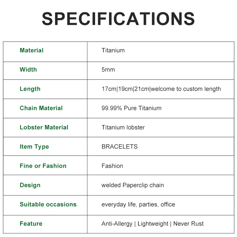 Be the first to review “Summer 5 MM Pure Titanium Paperclip Link Chain Bracelet Simple Jewelry Gift for Women”