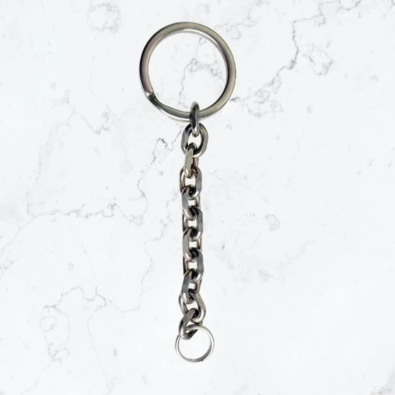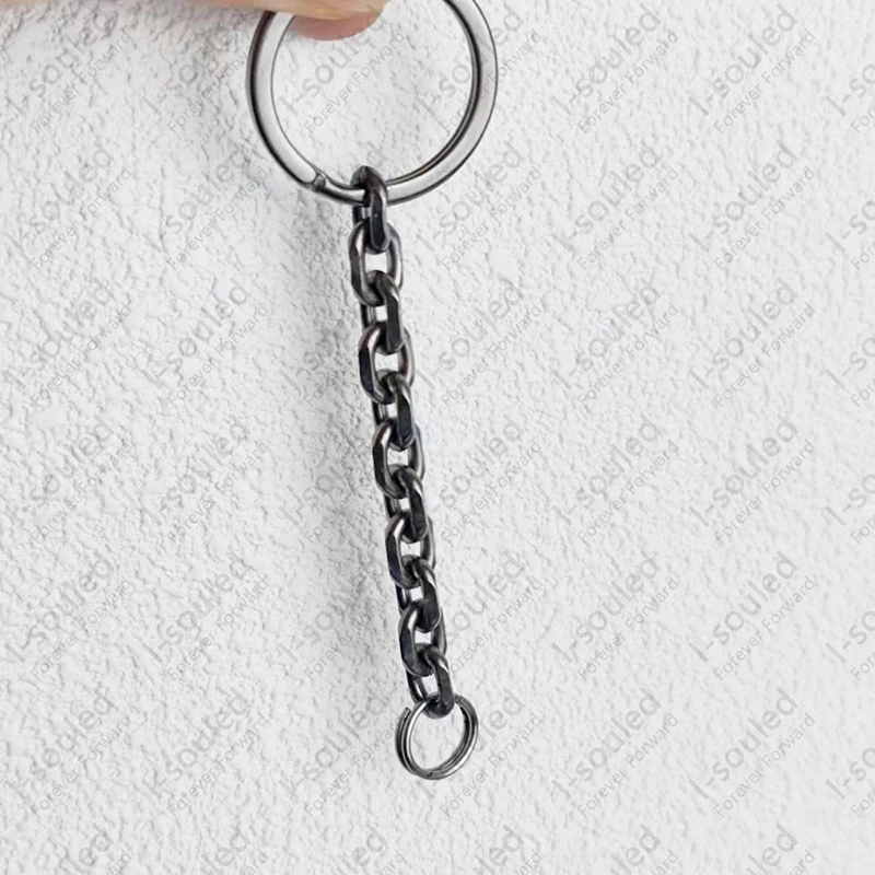 Size:25mm flat split ring , 10mm jump ring and different short titanium chain