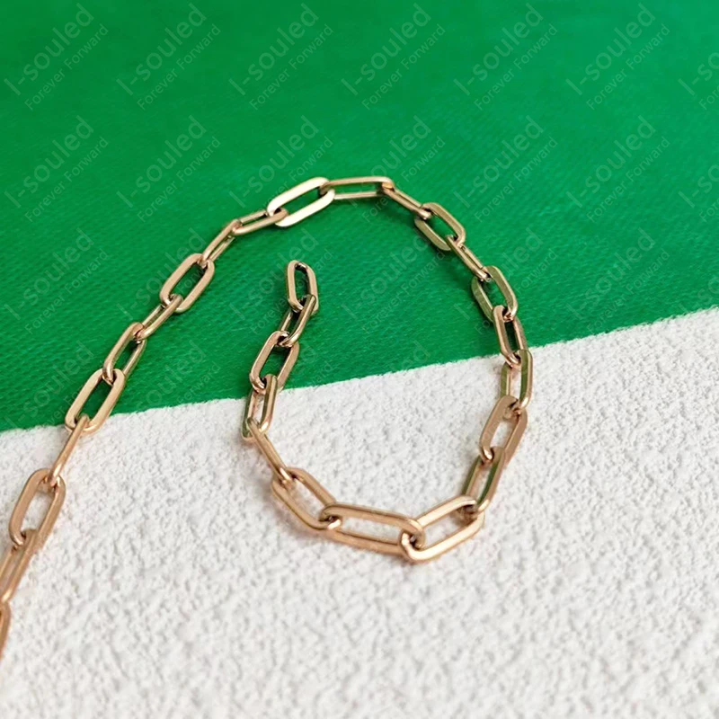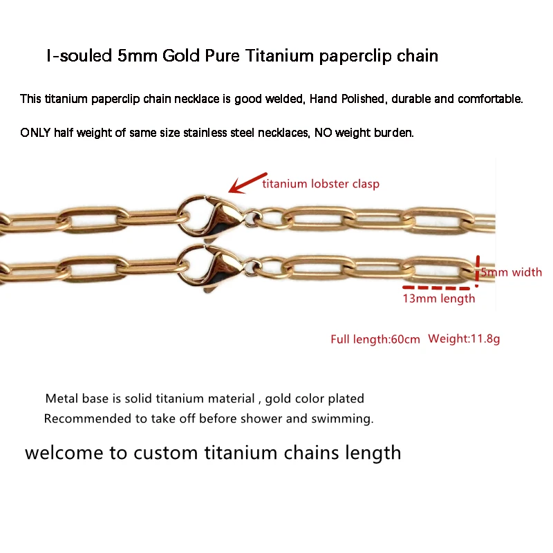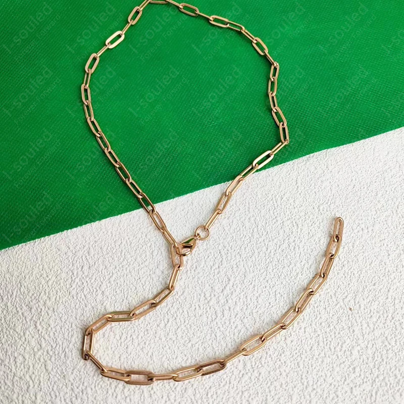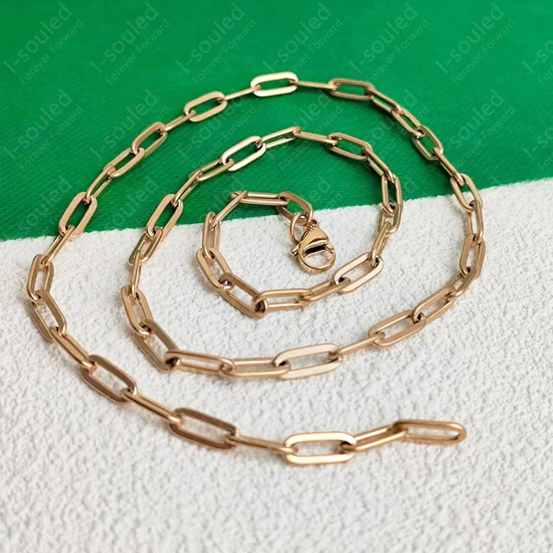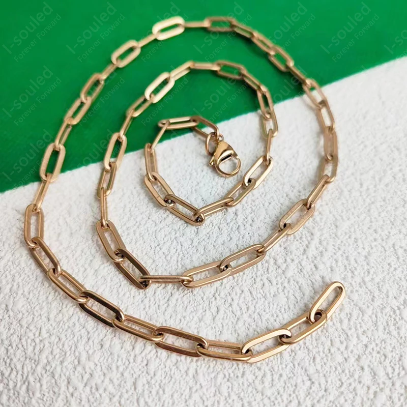 I-souled Gold Plated Titanium Paperclip Chain Necklace 5MM Width Women's Fashion Jewelry