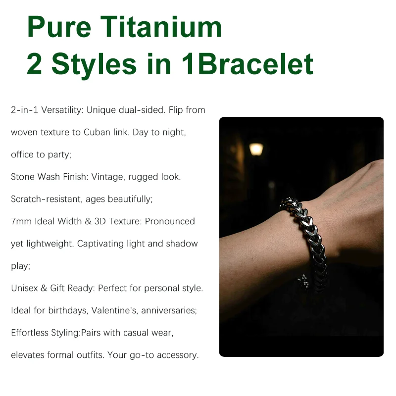 Cool Stone Wash! 7mm Wide Interwoven Chain Bracelet, Unisex Street Style Essential!