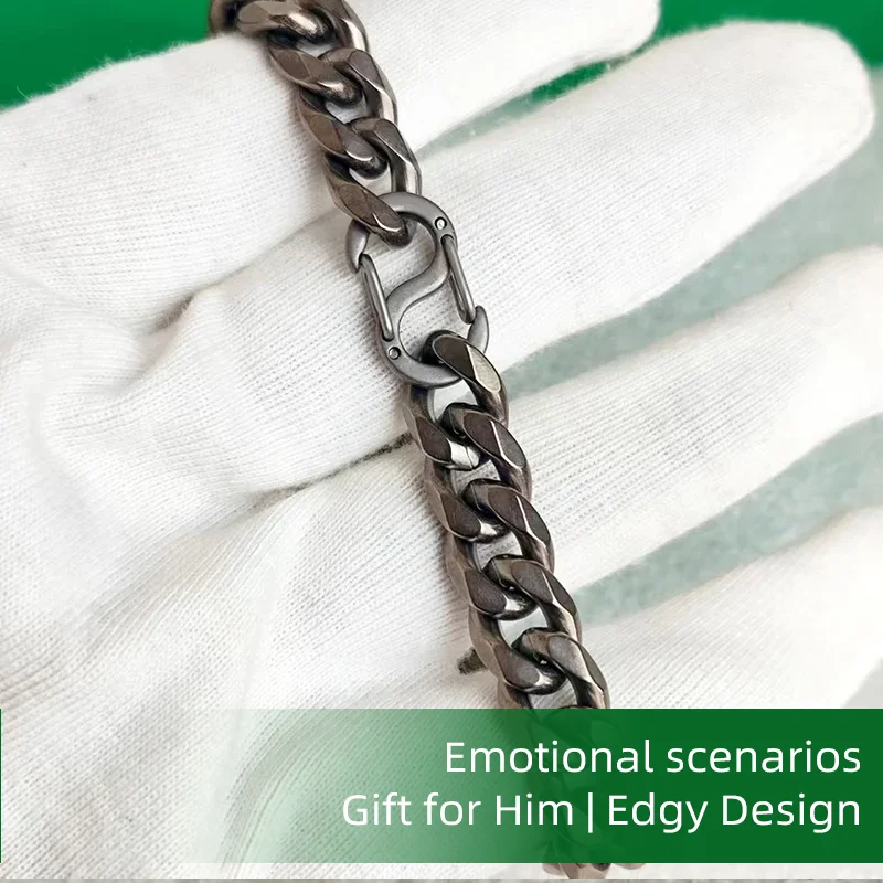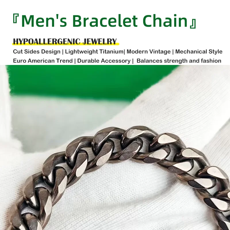 This vintage solid titanium chain bracelet, with a width of 10mm and cut sides design, exudes a vintage charm.